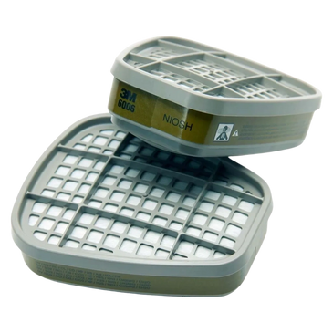 Protects against organic vapors only. This cartridge uses carbon particles to absorb contaminants, thus filtering the air being breathed. It swept-back design enhances field of vision and comfort. The layers and depth of the carbon bed and size of the particle body are designed to make this cartridge as long-lasting as possible. Compatible with all re-usable respirators and filters listed.