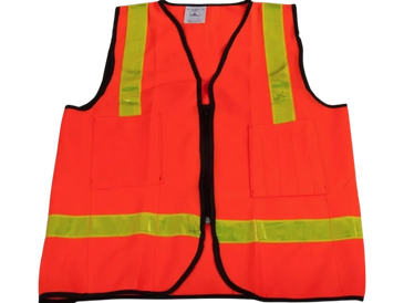 Safety vests stocked in three different materials: mesh, solid, or solid mesh. Available in lime or orange.